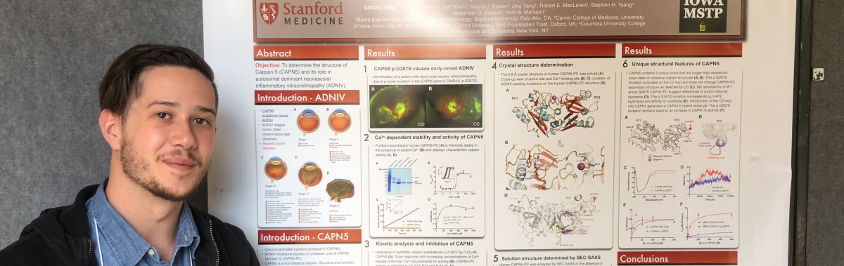 Gabe’s poster, “Structural and functional analysis of the human Calpain-5 proteolytic core,” detailed his current research at Stanford University to determine the crystal structure of Calpain-5 (CAPN5), a poorly-understood protease linked to Autosomal Dominant Neovascular Inflammatory Vitreoretinopathy. Gabe received a travel award from the University of Iowa’s Medical Scientist Training Program (MSTP) to attend the conference.